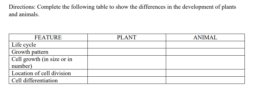 We did not find results for: Maybe you would like to learn more about one of these? Check spelling or type a new query. Animal and plant cell comparison table.